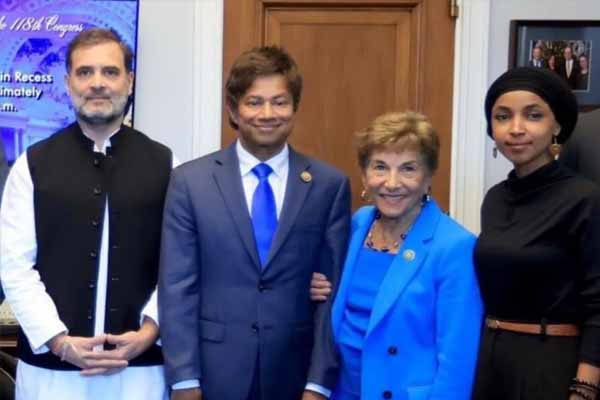 कांग्रेस नेता राहुल गांधी ने अमेरिका की अपनी यात्रा के दौरान विश्वविद्यालयों में छात्रों और शिक्षकों के अलावा भारतीय प्रवासियों से भी बातचीत की थी। इस दौरान उन्होंने अमेरिकी सांसदों से भी मुलाकात की थी। रेबर्न हाउस ऑफिस बिल्डिंग में हुई बैठक की मेजबानी सांसद ब्रैडली जेम्स शेरमेन ने की और इसमें अमेरिकी कांग्रेस के सदस्य जोनाथन जैक्सन, रो खन्ना, राजा कृष्णमूर्ति, बारबरा ली, श्री थानेदार, जीसस जी. "चुय" गार्सिया, इल्हान उमर, हैंक जॉनसन और जान शाकोवस्की शामिल थे। राहुल गांधी ने अमेरिकी राजनयिक डोनाल्ड लू और सांसद प्रमिला जयपाल से भी मुलाकात की।
