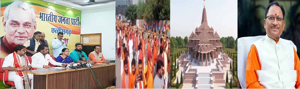 अयोध्या में सरयू नदी और हनुमानगढ़ी के पास 6 संस्थाओं का भव्य पंडाल बनकर तैयार हो गया है। भंडारे के लिए भोजन बनाने वाले 30 रसोइयों और 100 कार्यकर्ताओं की टीम को बस से 24 जनवरी को दोपहर 12 बजे सीएम विष्णुदेव साय वीआईपी रोड स्थित रामजी मंदिर से रवाना करेंगे। ये बातें बीजेपी प्रदेश उपाध्यक्ष लक्ष्मी वर्मा ने भाजपा कार्यालय एकात्म परिसर रायपुर में आयोजित संवाददाता सम्मेलन में कहीं। इस कार्यक्रम के संयोजक विधायक धरमलाल कौशिक, सहसंयोजक लक्ष्मी वर्मा, वीरेंदर श्रीवास्तव, डॉ. ललित मखीजा हैं। भाजपा प्रदेश उपाध्यक्ष वर्मा ने कहा कि 24 जनवरी के कार्यक्रम जो राममंदिर में आयोजित होगा, उसमें कैबिनेट के सभी सदस्यों सहित सामाजिक और धार्मिक लोगों को भी आमंत्रित किया जाएगा।