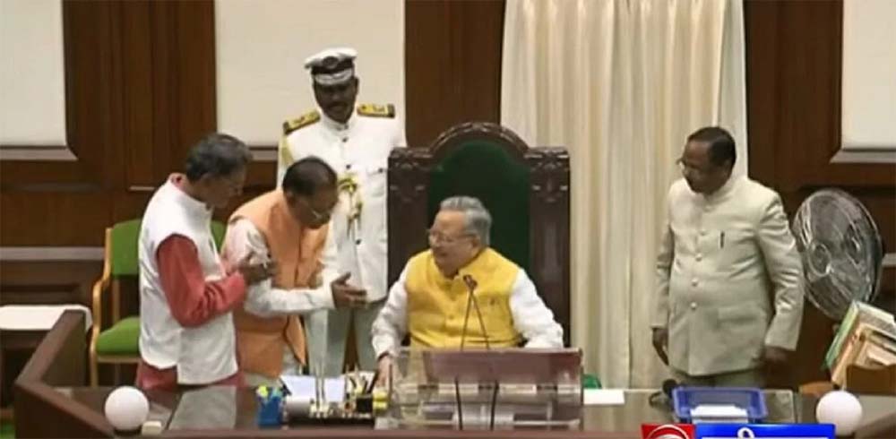 छत्तीसगढ़ के पूर्व मुख्यमंत्री रमन सिंह को छत्तीसगढ़ विधानसभा का अध्यक्ष चुना गया है। प्रोटेम स्पीकर रामविचार नेताम ने उनके निर्विरोध निर्वाचित होने की सदन में घोषणा की। प्रोटेम स्पीकर के अनुरोध पर मुख्यमंत्री विष्णु देव साय और नेता प्रतिपक्ष चरणदास महंत ने मिलकर सिंह को अध्यक्ष की आसंदी तक लेकर गए। इसके बाद सीएम विष्णु देव साय , प्रोटेम स्पीकर नेताम, चरणदास महंत, भूपेश बघेल समेत सभी दिग्गज नेताओं ने रमन सिंह को बधाई और शुभकामनाएं दी। सभी ने उनके 15 साल के शासनकाल, कुशल नेतृत्व और सादगी की खुले कंठ से कोटी-कोटी प्रशंसा की।