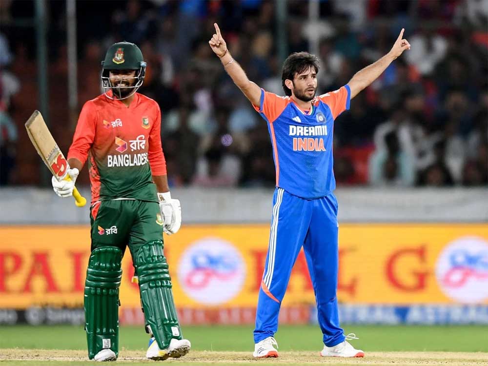 बांग्लादेश के खिलाफ पहले दो टी20 में बेंच गर्म करने वाले रवि बिश्नोई को आखिरी मुकाबले में जैसे ही मौका मिला इस युवा गेंदबाज ने इतिहास रच दिया। हैदराबाद में खेले गए हाईस्कोरिंग मुकाबले में बिश्नोई ने 4 ओवर के कोटे में 30 रन खर्च कर सर्वाधिक 3 विकेट चटकाए, इस दौरान उन्होंने एक मेडन ओवर भी फेंका। बिश्नोई ने इस दौरान नजमुल हुसैन शान्तो के साथ लिटन दास और राशिद हुसैन का भी शिकार किया। इन तीन विकेटों के दम पर बिश्नोई ने अपने T20I करियर में 50 विकेट भी पूरे किए।