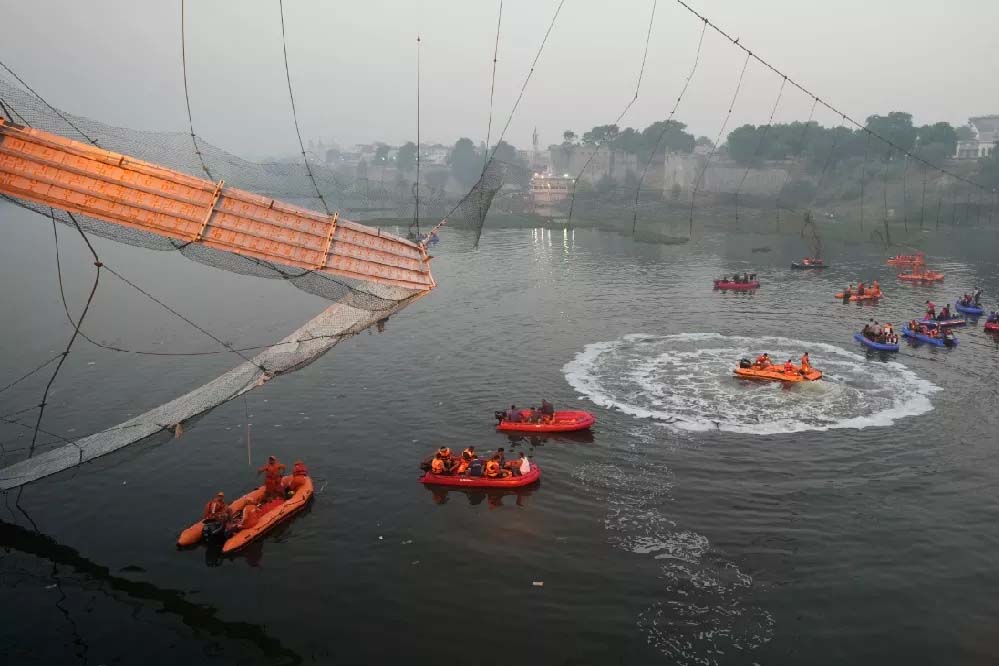 गुजरात के बहुचर्चित मोरबी ब्रिज हादसे में मुख्य आरोपी जयसुख पटेल को जमानत दे दी है। सुप्रीम कोर्ट के फैसले के बाद जयसुख पटेल को 14 महीने बाद बाहर आने को मिलेगा। सुप्रीम कोर्ट ने जयसुख पटेल को जमानत देने के साथ कुछ शर्तें भी तय की है। इसमें कोर्ट ने कहा है कि पटेल के सात दिन में ट्रायल कोर्ट में पेश होने को कहा है। मोरबी में झूलते हुए पुल के गिरने से 135 लोगों की मौत हुई थी। इसके बाद पीएम मोदी ने खुद मोरबी के दौरे पर पहुंचे थे और पीड़ितों से मिले थे। गुजरात मोरबी पुल दुर्घटना विधानसभा चुनावों से पहले हुई थी। पुलिस ने जयसुख पटेल को मुख्य आरोपी बताते हुए कोर्ट में आराेप पत्र दाखिल किया था।