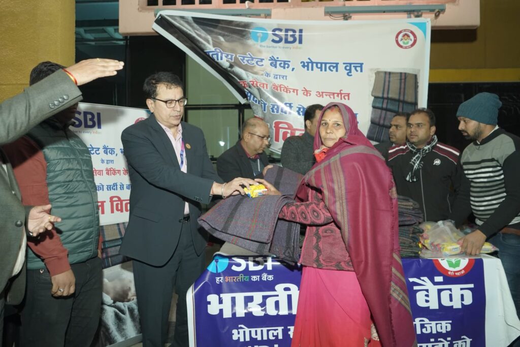 SBI भोपाल मण्डल द्वारा MP – CG के गरीबों को सामाजिक सेवा के तहत कम्बल किया वितरित
