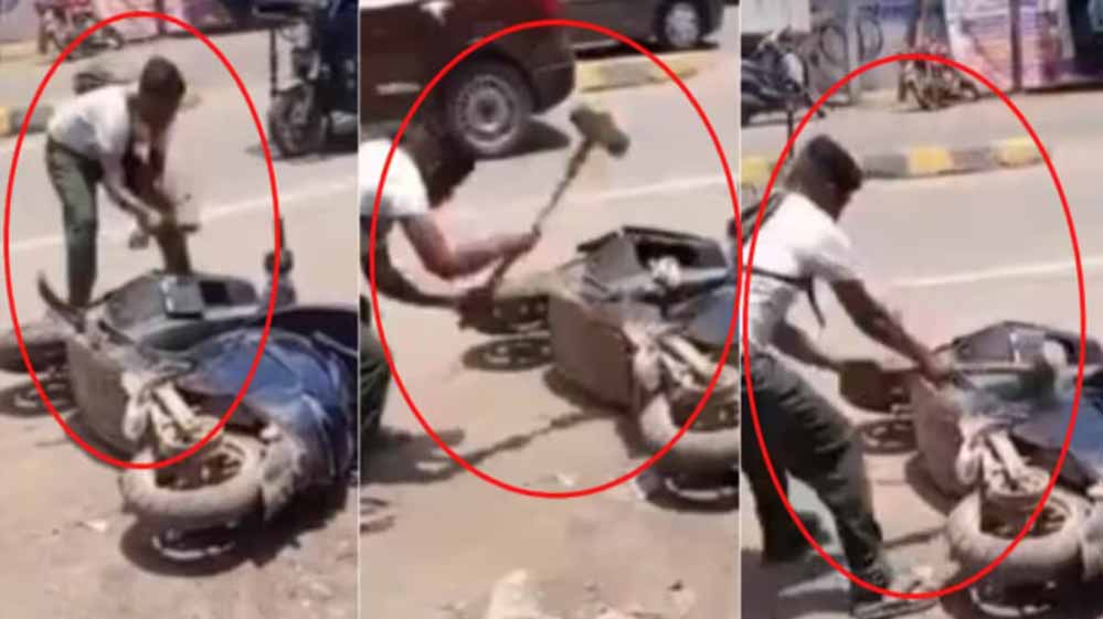 युवक की स्कूटी में फिर परेशानी आई तो वह शोरूम में शिकायत लेकर पहुंचा। इसके बाद शोरूम का रवैया फिर से वही रहा। इसी बात को लेकर वह भड़क गया और हथौड़े मारकर शोरूम के बाहर अपनी स्कूटी तोड़ दी है। वहां से गुजर रहे लोगों ने इसका वीडियो रेकॉर्ड कर लिया और सोशल मीडिया पर वायरल कर दिया।