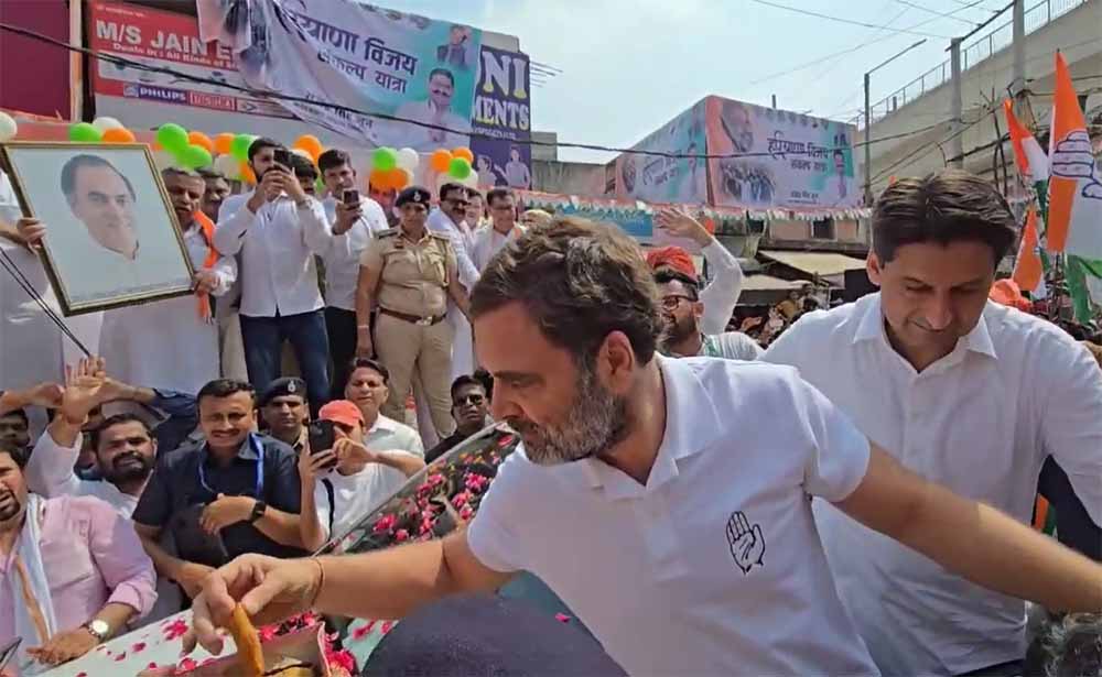 कांग्रेस नेता राहुल गांधी की हरियाणा परिवर्तन यात्रा का आज दूसरा दिन है। हरियाणा परिवर्तन यात्रा का शुभारंभ आज देश की राजधानी दिल्ली से सटे बहादुरगढ़ से हुआ। राहुल गांधी यहां कांग्रेस प्रत्याशी राजेंद्र सिंह जून के समर्थन में रोड शो करने पहुंचे थे। इस दौरान बहादुरगढ़ के पकौड़ा चौक पर पहुचने पहले से मौजूद हजारों की संख्या में लोगों ने गांधी का जोरदार स्वागत किया।