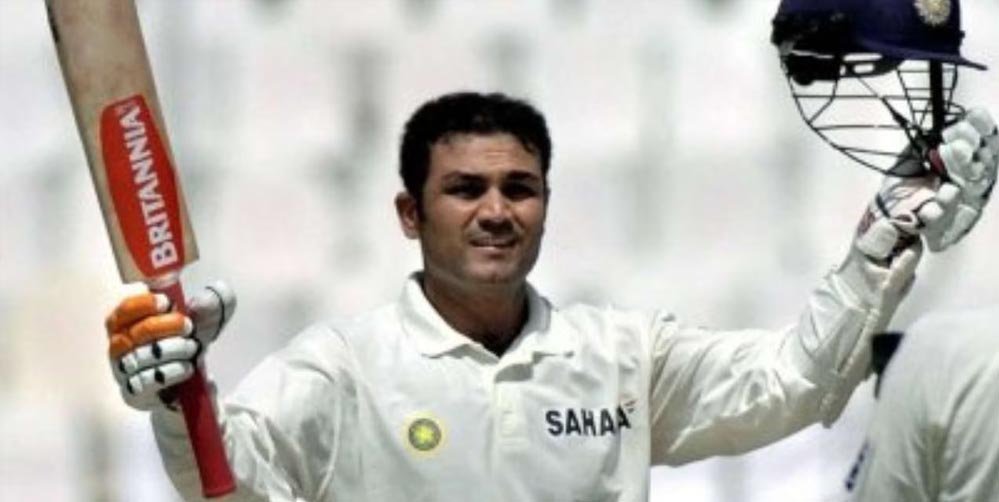 वीरू ने छक्का जड़कर पूरी की ट्रिपल सेंचुरी