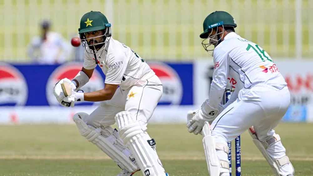 मोहम्मद रिजवान नाबाद (171)और सऊद शकील (141) की शानदार शतकीय पारियों के दम पर पाकिस्तान ने बंगलादेश के खिलाफ टेस्ट मैंच में दूसरे दिन गुरुवार को 448 के स्कोर पर पारी घोषित कर अपनी पकड़ मजबूत बना ली। शाम को बल्लेबाजी करने उतरी बंगलादेश ने 27 रन बना लिये है और दूसरे दिन का खेल समाप्त होने के समय शादमन इस्लाम (12) और जाकिर हसन (11) रन बनाकर क्रीज पर है। बंगलादेश अभी पाकिस्तान से 421 रन पीछे है। आज पाकिस्तान ने कल के स्कोर चार विकेट पर 158 रनों से आगे खेलते हुए सऊद शकील (141) और मोहम्मद रिजवान नाबाद (171) रन की पारियों के दम पर सात विकेट पर 448 के स्कोर पर पारी घोषित कर दी।