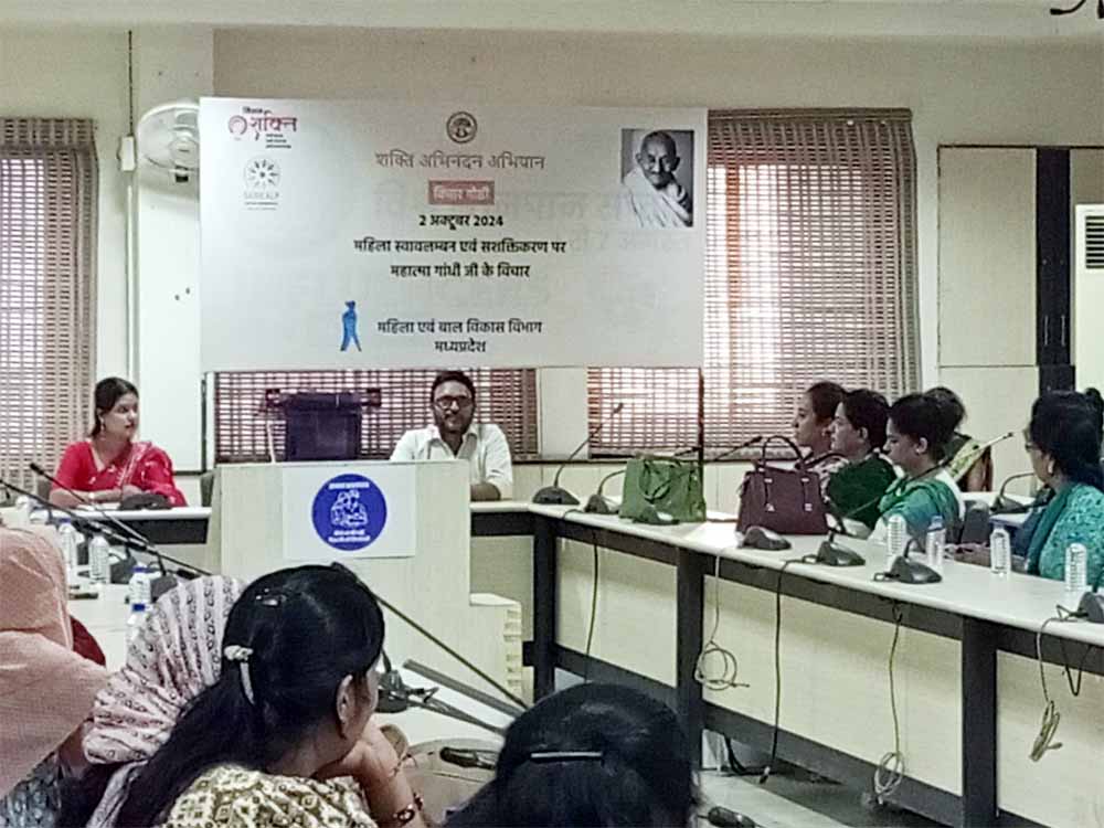 अभियान के प्रथम दिन भोपाल में “महिला स्वावलंबन एवं सशक्तिकरण पर महात्मा गाँधी के विचार’’ विषय पर संगोष्ठी का आयोजन किया गया। संगोष्ठी में विभिन्न क्षेत्रों से आये विषय-विशेषज्ञों ने गाँधी जी के महिला सशक्तिकरण के प्रति दृष्टिकोण को अत्यंत प्रगतिशील और सकारात्मक बताया। कार्यक्रम में महिला सशक्तिकरण पर गाँधी जी की समानता की अवधारणा, स्वतंत्रता और आत्म-निर्भरता, अहिंसा और शक्ति तथा महिलाओं की शिक्षा का महत्व पर विस्तृत चर्चा की गई।