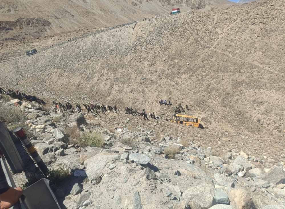 लद्दाख के पास एक दर्दनाक सड़क हादसा हुआ, जब एक बस गहरी खाई में गिर गई। इस हादसे में छह लोगों की मौत हो गई, जबकि कई अन्य घायल हो गए। दुर्घटना के बाद स्थानीय प्रशासन और सुरक्षा बलों ने तुरंत राहत और बचाव कार्य शुरू किया, जिसके बाद घायलों को पास के अस्पतालों में भर्ती कराया गया है।