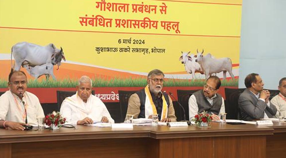 कुशाभाउ ठाकरे सभागृह भोपाल में आज "गौ-रक्षा संवाद" निराश्रित गौ-वंश एवं गौशालाओं के बेहतर प्रबंधन पर हितग्राहियों की कार्यशाला आयोजित की गई। कार्यशाला में पंचायत एवं ग्रामीण विकास मंत्री पटेल की अध्यक्षता में गौशाला प्रबंधन से संबंधित प्रशासकीय पहलू पर विशेष सत्र का आयोजन किया गया। सत्र में पांच पैनलिस्ट एवं दो विषय विशेषज्ञों ने गौ-संरक्षण, दुग्ध प्रोसेस्ड उत्पादों, गौ-मूत्र एवं गोबर की उपयोगिता तथा अन्य विषयों पर अपने विचार रखे। गौशाला संचालकों ने बेहतर प्रबंधन के लिए कई सुझाव दिए। पंचायत एवं ग्रामीण विकास विभाग के अपर मुख्य सचिव मलय श्रीवास्तव सहित पशुपालन विभाग के अधिकारी भी उपस्थित रहे।
