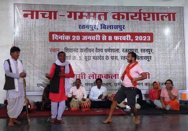 आदिवासी लोककला अकादमी के अध्यक्ष नवल शुक्ल ने यह जानकारी देते हुए बताया कि शिवानंद कसौंधन वैश्य धर्मशाला, रजहापारा, रतनपुर, वार्ड क्रमांक 5, बूढ़ा महादेव के पास, रतनपुर, बिलासपुर में आयोजित इस कार्यशाला में चयनित कलाकार प्रशिक्षण ले रहे हैं। यहां कलाकारों को नाचा-गम्मत को सहजता से जानने-समझने का अवसर मिल रहा है।