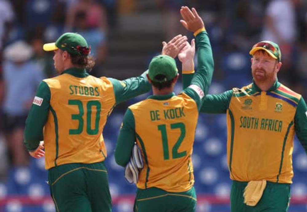 क्विंटन डिकॉक (65) की तेजतर्रार फिफ्टी के बाद अपने गेंदबाजों और फील्डर्स की दमदार कैचिंग के बूते साउथ अफ्रीका ने इंग्लैंड को रोमांचक मैच में हरा दिया। यह सुपर-8 राउंड में प्रोटियाज टीम की लगातार दूसरा मैच जीत है। इसी के साथ साउथ अफ्रीका सेमीफाइनल में क्वालीफाई करने के बेहद करीब पहुंच चुकी है। मैच में साउथ अफ्रीका ने टॉस गंवाकर पहले बल्लेबाजी करते हुए छह विकेट खोकर 163 रन बनाए। जवाब में इंग्लैंड की टीम सात रन दूर रह गई और निर्धारित 20 ओवर में छह विकेट खोकर 156 रन ही बना पाई। इंग्लैंड को आखिरी ओवर में जीत के लिए 14 रन चाहिए थे, लेकिन एनरिक नॉर्ट्जे की पहली ही गेंद पर मार्करम ने सेट बल्लेबाज हैरी ब्रूक का लाजवाब कैच लपककर बाजी पलट दी।