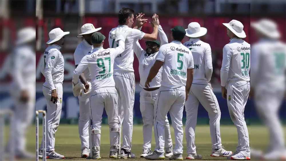 पहली पारी में बल्लेबाजी करने के बाद, प्रोटियाज ने संघर्ष किया। एक के बाद एक विकेट गिरने के बाद, कप्तान तेम्बा बावुमा की 70 रनों की पारी ने उनकी टीम को 191/10 तक पहुंचाया। पहली पारी में 200 रन के आंकड़े को पार न कर पाने के कारण प्रोटियाज गेंदबाजों ने दूसरे दिन भारी दबाव में मैदान संभाला और शानदार प्रदर्शन किया। मार्को जेनसन के शानदार 6.5 ओवर के स्पेल में बाएं हाथ के तेज गेंदबाज ने सात विकेट झटके। कैगिसो रबाडा (1) और गेराल्ड कोएट्जी (2) ने जेनसन की मदद की और मेहमान टीम को 42 रन पर समेट दिया, जिससे उन्हें 149 रन की बढ़त मिली।