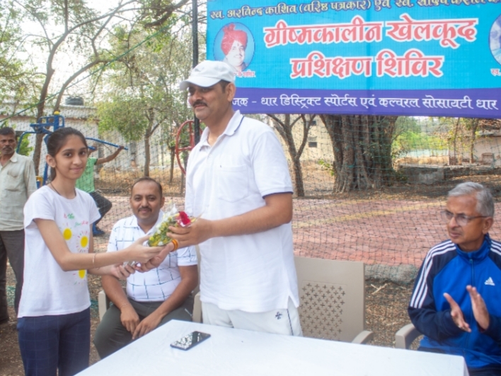 डिस्ट्रिक्ट स्पोर्ट्स एंड कल्चरल सोसायटी के 34 वें निशुल्क स्व. अरविंद काशीव,स्व. संदीप कराले स्मृति के खेलकूद प्रशिक्षण शिविर में आज मुख्य अतिथि श्री वीरेंद्र कटारे डिप्टी कलेक्टर धार जिला धार एवं श्री विवेक यादव जी पूर्व राष्ट्रीय बैडमिंटन खिलाड़ी उपस्थित थे अतिथियों ने अपने उद्बोधन में सर्वप्रथम श्री कटारे ने स्पोर्ट्स के महत्व को बताते हुए उस की व्याख्या की खेल कब शुरु हुआ उसकी जानकारी दी श्री यादव ने बताया खिलाडियों को किस प्रकार फिट रखा जा सकता है उसके बारे में विस्तृत बताया उन्होंने कहा खेल एवं शिक्षा बराबर होली चाहिए।शिविर मैं क्रिकेट,कराते,किक बॉक्सिंग स्केटिंग ,योग जेसी विधाओ मैं करीब 125 खिलाडी प्रशिक्षण प्राप्त कर रहे हे।