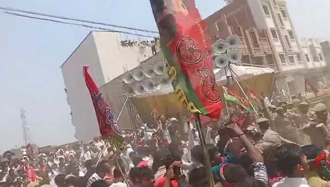 अखिलेश यादव की जनसभा में मची भगदड़, पुलिस टीम ने किया शांत