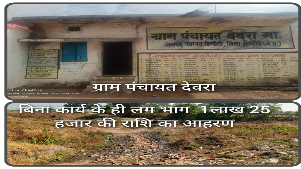 इस तरह से न जाने उपयंत्री महोदय संदीप शुक्ला जी के द्वारा कितने महान कार्य किए गए हैं अगर उनके हर पंचायत क्षेत्रों का निरीक्षण किया जाए तो ऐसे ना जाने कितने बड़े-बड़े खुलासे हो सकते हैं जिसका अंदाजा भी नहीं लगाया जा सकता है।ऐसा ही मामला हाल ही में ग्राम पंचायत देवरा का सामने आया है जहां लगभग 51 लाख की लागत से स्टॉप डैम काजवेकम का निर्माण कार्य कटोरी नाल में कराया जाना है जहां अब तक एक फावड़ा भी नहीं चलाया गया है और वहां पर स्टॉप डैम काजवेकम निर्माण के नाम पर फर्जी मस्टर रोल जारी कर लगभग 1 लाख 25हजार रुपए की राशि का आहरण कर लिया गया है अब सवाल यह उठता है कि जब उक्त नाल में सफाई कार्य के अलावा निर्माण कार्य के लिए कोई कार्य ही नहीं कराया गया है