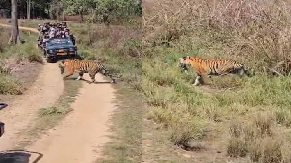 बता दें, टूरिस्ट को यह नजारा कान्हा नेशनल पार्क में बायसन रोड के बड़े घास के मैदान में देखने को मिला. यह मोहिनी की टेरीटरी है. इसे लेकर पार्क के फील्ड डायरेक्टर पुनीत गोयल का कहना है कि यह नजारा प्राकृतिक है. बाघिन बच्चों को एक स्थान से दूसरे स्थान तक ले जाने के लिए उन्हें मुंह में दबाकर चलती है. लेकिन, नवजात को वह छुपाकर रखती है. इसलिए यह दुर्लभ दृश्य पहली बार दिखाई दिया है.
