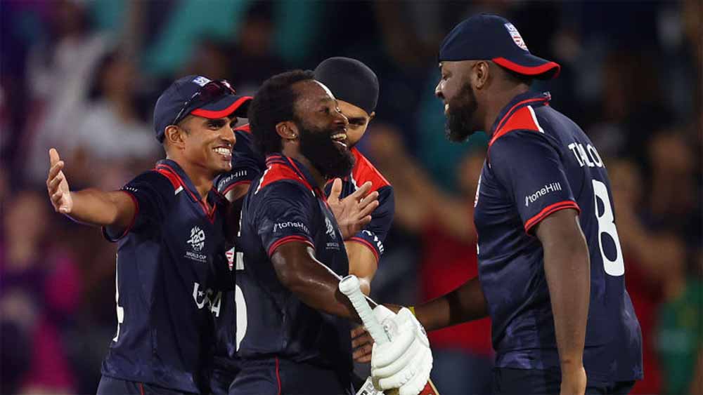 आरोन जोन्स की 40 गेंद पर खेली गई नाबाद 94 रन की पारी की मदद से सह मेजबान अमेरिका ने टी20 विश्व कप के उद्घाटन मैच में कनाडा को 14 गेंद शेष रहते हुए सात विकेट से हराकर शीर्ष स्तर की क्रिकेट में धमाकेदार शुरुआत की। कनाडा ने पहले बल्लेबाजी करते हुए 5 विकेट पर 194 रन बनाए। अमेरिका ने इसके जवाब में एंड्रीज गौस के 65 रन और जोन्स की तूफानी पारी की मदद से 17.4 ओवर में तीन विकेट पर 197 रन बनाकर जीत दर्ज की। जोन्स ने अपनी पारी में 10 छक्के और चार चौके लगाए।