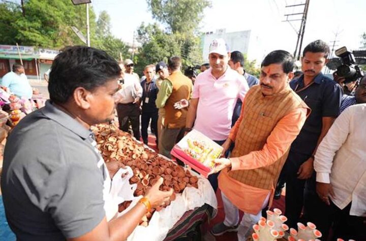 मुख्यमंत्री डॉ. यादव ने सुनील और लकी प्रजापति की दुकान से खरीदे दीपक मुख्यमंत्री का पथ-विक्रेताओं ने बाजार शुल्क से...
