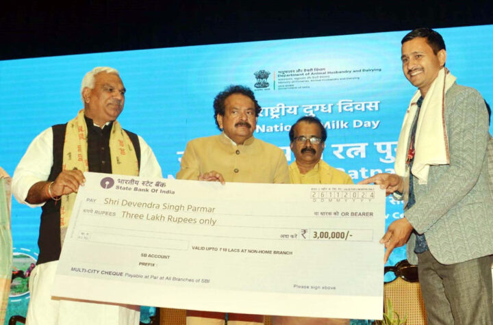 शाजापुर जिले का किसान गोपाल रत्न राष्ट्रीय पुरस्कार 2024 से सम्मानित केंद्रीय पशुपालन मंत्री ने देवेन्द्र परमार को दिल्ली में...