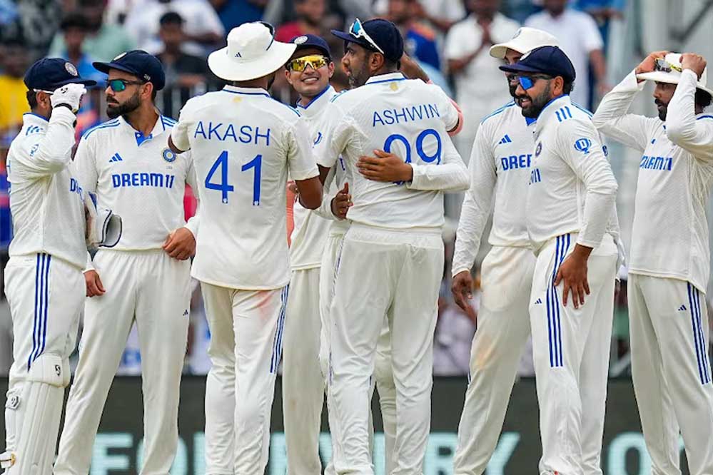 न्यूजीलैंड के खिलाफ तीन टेस्ट मैचों के लिए भारत की टीम: रोहित शर्मा (कप्तान), जसप्रीत बुमराह (उपकप्तान), यशस्वी जायसवाल, शुभमन गिल, विराट कोहली, केएल राहुल, सरफराज खान, ऋषभ पंत (विकेट कीपर), ध्रुव जुरेल (विकेट कीपर), रविचंद्रन अश्विन, रवींद्र जडेजा, अक्षर पटेल, कुलदीप यादव, मोहम्मद सिराज, आकाश दीप