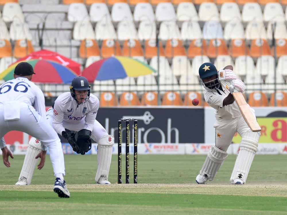 इससे पहले पाकिस्तन की शुरुआत खराब रही और टीम ने पहले 45 मिनट में 19 रन के स्कोर तक ही सलामी बल्लेबाज अब्दुल्ला शफीक (07) और कप्तान शान मसूद (03) के विकेट गंवा दिए। दोनों विकेट बाएं हाथ के स्पिनर जैक लीच के खाते में गए। गुलाम ने इसके बाद सलामी बल्लेबाज सैम अयूब (77) के साथ तीसरे विकेट के लिए 149 रन जोड़कर पारी को संभाला। अयूब ने चार टेस्ट में अपना तीसरा अर्धशतक पूरा किया। मैथ्यू पॉट्स ने चाय के विश्राम से पहले अयूब को शॉर्ट मिड ऑफ पर कप्तान बेन स्टोक्स के हाथों कैच कराके इस साझेदारी को तोड़ा।