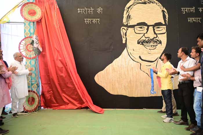 इस अवसर पर आशीष परगनिहा एवं मितान क्लब के अन्य सदस्यों द्वारा पैरा से तैयार किया गया पोट्रेट भेंट किया गया। जिसे अब तक का सबसे बड़ा पोटे्रट बताया गया है जो कि 20 फीट बाई 15 फीट का बना है, इससे पहले ढाई बाय चार फीट का पोट्रेट छत्तीसगढ़ महतारी का बनाया गया था। कार्यक्रम में गृह मंत्री श्री ताम्रध्वज साहू, संसदीय सचिव श्री गुरू दयाल सिंह बंजारे, विधायक श्री आशीष छाबड़ा उपस्थित हैं।