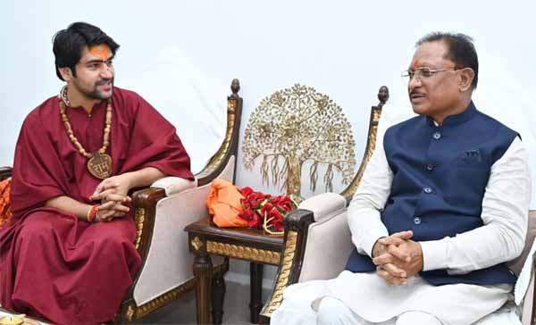 मुख्यमंत्री विष्णुदेव साय ने आज अपने निवास में बागेश्वर धाम के पीठाधीश्वर पंडित धीरेंद्र शास्त्री से प्रदेशवासियों की सुख-समृद्धि और खुशहाली के लिए आशीर्वाद ग्रहण किया। मुख्यमंत्री साय ने पं. धीरेंद्र शास्त्री के अपने निवास पहुंचने पर उन्हें शाल- श्रीफल भेंटकर उनका का आत्मीय स्वागत किया।