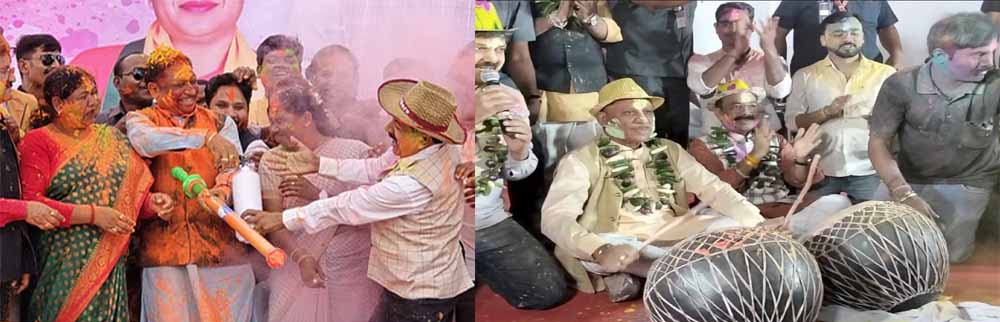 छत्तीसगढ़ में होली का पर्व बड़े ही हर्षोल्लास और धूमधाम  के साथ मनाया जा रहा है।  प्रदेशवासी एक दूसरे के गले लगकर पर्व की बधाई और शुभकनाएं दे रहे हैं। इस कड़ी में प्रदेश के मुखिया सीएम विष्णुदेव साय ने जशपुर में होली खेली। सीएम फागुन त्यौहार के रंग में रंगे दिखे। क्षेत्रवासियों के साथ खूब होली खेली। इस दौरान जशपुर विधायक रायमुनी भगत,पत्थलगांव विधायक गोमती साय समेत क्षेत्र के जनप्रतिनिधि और आमजन बड़ी संख्या में मौजूद रहे। जशपुर सीएम साय का गृह जिला है और बगिया उनका गृहग्राम है।