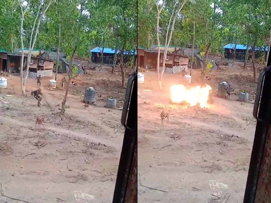 नक्सलियों ने अबूझमाड़ के इरकभट्टी पुलिस कैंप में हमला किया है. पुलिस कैंप में नक्सलियों ने लगातार बीजीएल रॉकेट लांचर दागे. इस हमले का वीडियो सोशल मीडिया पर वायरल हो रहा है. वीडियो में देखा जा सकता है कि बीजीएल रॉकेट जवानों के पास गिरता है. लेकिन उसके फटने से पहले जवान भाग जाते हैं और उसके बाद जोरदार धमाका होता है.