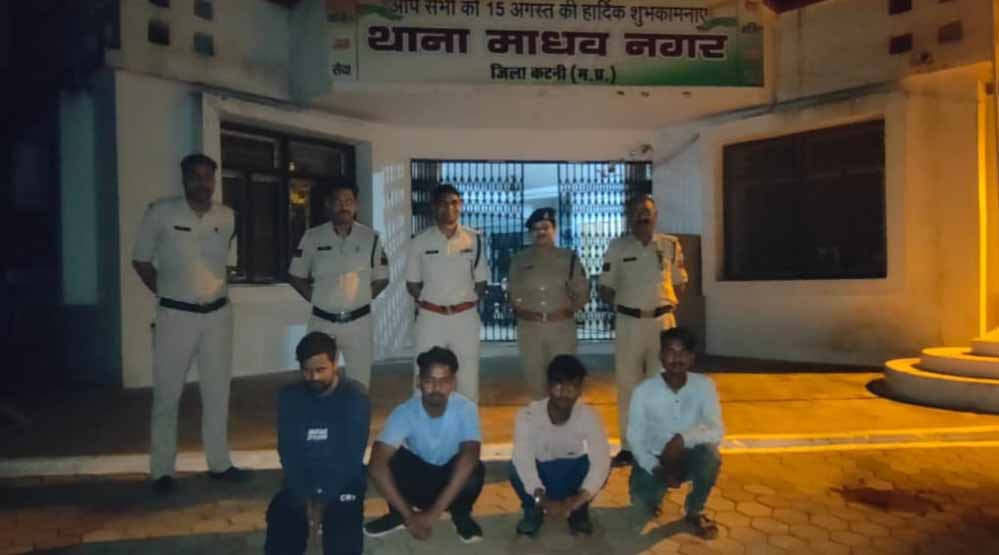 पकड़े गए रामानुज रजक पिता राजेश रजक निवासी नई बस्ती, रवि सोंधया, पिता शंकर लाल सोंधिया, निवासी आधारकाप, कुनाल धूरिया पिता विष्णु धूरिया निवासी शम्भू टाकीज रोड संतनगर, अजय कहार पिता बाबू लाल कहार निवासी बरगवां
