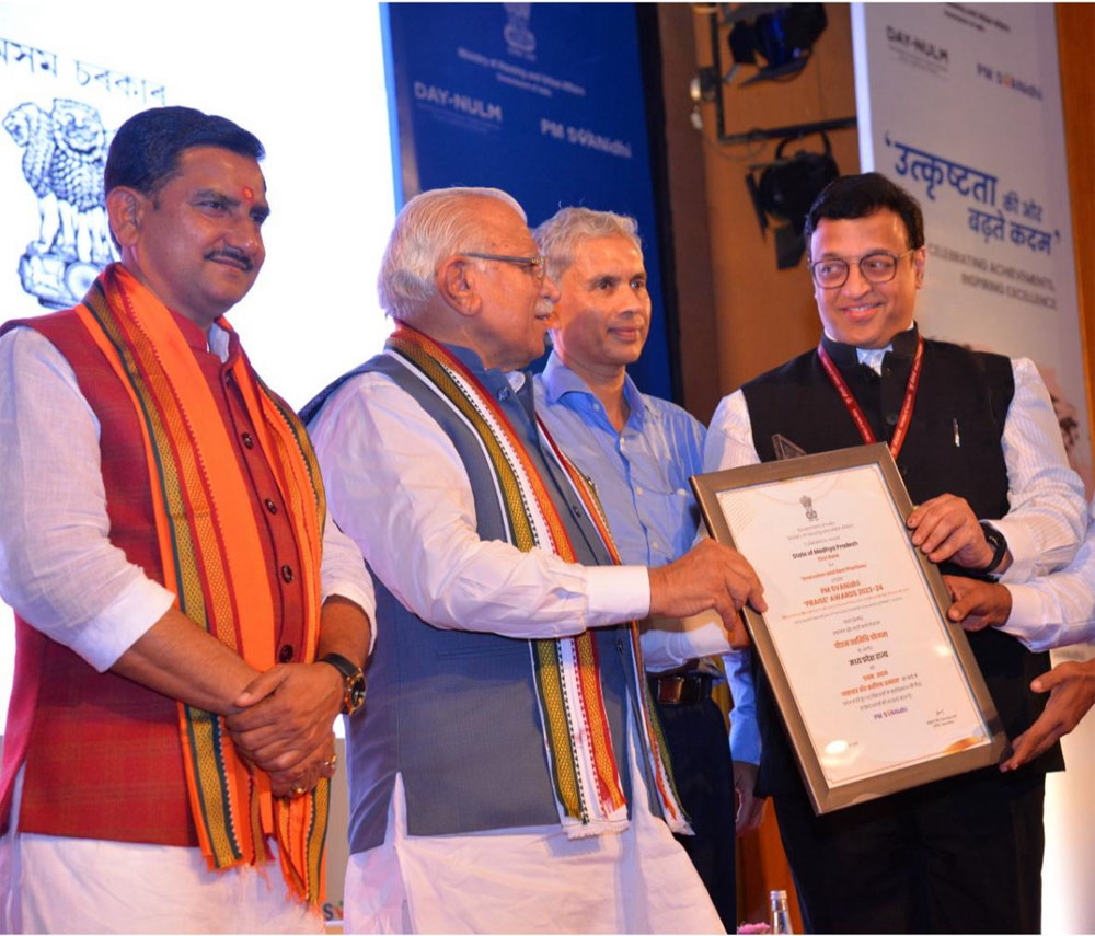 डे-एनयूएलएम योजना के क्रियान्वयन के लिए सीधी को द्वितीय पुरस्कार, मंदसौर एवं इटारसी को तृतीय पुरस्कार प्रदान किया गया है। पीएम स्व-निधि योजना से लाभान्वित 2 शहरी पथ विक्रेताओं और 2 सहायता समूहों को भी सम्मानित किया गया।