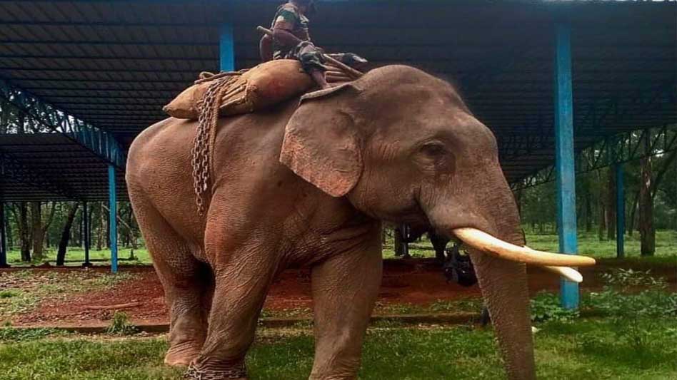 हमारा हीरो हाथी राजू अब पूरे कद का विशाल दंतैल हो गया है वह सध चुका है कुमकी हाथी की तरह।