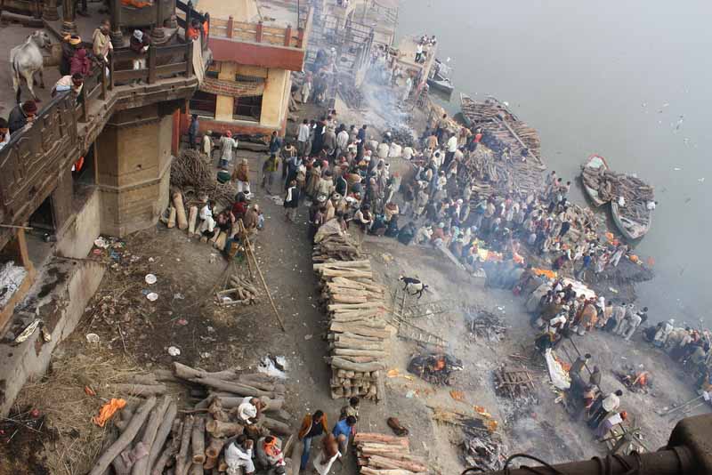 शुक्रवार की दोपहर तक मणिकर्णिका घाट पर शवदाह के लिए अनवरत कतार लगी रही। तापमान में रिकाॅर्ड बढ़ोत्तरी के बाद मणिकर्णिका घाट पर बीती रात शवदाह करने वालों की लंबी लाइन लग गई थी। हालत यह हो गई कि मैदागिन के साथ ही भैंसासुर घाट से लेकर मणिकर्णिका तक शवयात्री ही नजर आ रहे थे।