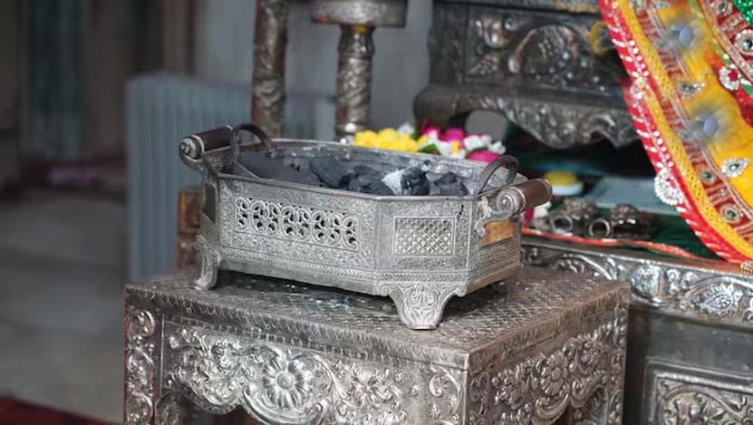 भगवान को ठंड से बचाने के लिए वृंदावन में जलाई गई चांदी की अंगीठी, भगवान ने हाथ में पहने ऊनी दस्ताने