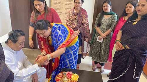 रविवार को पूर्व सीएम कमलनाथ भोपाल स्थित अपने आवास पहुंचे। जहां कांग्रेस नेत्रियों ने उन्हें राखी बांधी। कमलनाथ ने अपने सोशल मीडिया अकाउंट एक्स पर इसकी तस्वीरें पोस्ट की है। जिसमें उन्होंने लिखा- आज भोपाल में बहनों से राखी बँधवाने का सौभाग्य प्राप्त हुआ। बहनों के इस प्रेम और स्नेह से हृदय में नई ऊर्जा और उत्साह का संचार होता है। पवित्र राखी हमें बहनों की रक्षा करने की प्रेरणा देती है। ईश्वर मुझे शक्ति दे कि मैं आजीवन बहनों के सम्मान की रक्षा करता रहूँ।