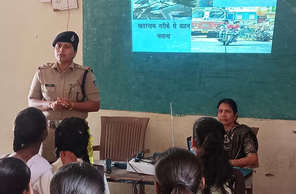 पुलिस मुख्यालय द्वारा सड़क दुर्घटनाओं रोकने के उद्देश्य से आमजन को यातायात नियमों के प्रति जागरूक करने के लिए जागरूकता अभियान चलाया जा रहा है जिसके तहत आज पुलिस अधीक्षक अनूपपुर मोती उर रहमान अतिरिक्त पुलिस अधीक्षक अनूपपुर इसरार मंसूरी एवं अनु विभागीय अधिकारी अनूपपुर सुमित केरकेट्टा के मार्गदर्शन में यातायात प्रभारी ज्योति दुबे द्वारा कोतमा के शासकीय हायर सेकेंडरी एक्सीलेंस स्कूल में बच्चों को ट्रैफिक रूल्स की जानकारी देने हेतु अवेयरनेस कार्यक्रम आयोजित किया गया ।जिसमें 200 से अधिक बच्चों शामिल हुए ।