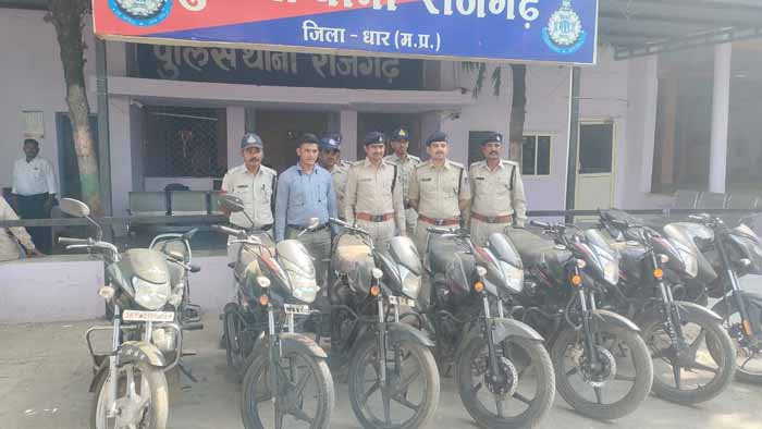 धार, झाबुआ व इंदौर से चोरी किये वाहन बरामद कर क्षेत्र मे वाहन चोरी की वारदात रोकने व चोरी करने वाले अपराधियो पर प्रभावी कार्यवाही करने हेतु  पुलिस अधीक्षक  धार,  मनोज कुमार सिंह व अतिरिक्त पुलिस अधीक्षक  देवेन्द्र पाटीदार द्वारा निर्देशित किया गया जिसके तारतम्य मे अनुविभागीय अधिकारी पुलिस सरदारपुर श्री आशुतोष पटेल के मार्गदर्शन मे थाना प्रभारी राजगढ़ कमलसिंह पंवार द्वारा क्षेत्र मे मुखबीर तंत्र को सक्रिय किया गया व दिनांक 17.05.2023 को मुखबीर सुचना पर तीन विधी विरूद्ध बालको को अभीरक्षा मे लिया गया जिनके कब्जे व निशादेही से थाना राजगढ़ से चोरी गई होण्डा शाईन मोटर सायकल जप्त की गई तथा अपचारीयो ने पुछताच मे थाना कोतवाली धार, थाना पिथमपुर, थाना जोबट अलीराजपुर व जिला इंदौर से कुल 06 मोटर सायकल चोरी करना बताया, अपचारीयो से कुल 07 मोटर सायकल किमती 5,00,000/- रूपये की बरामद की गई ।