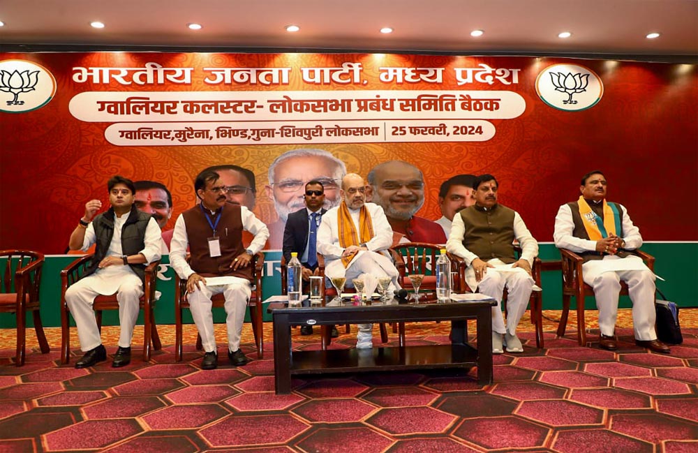 केंद्रीय गृह मंत्री अमित शाह ने रविवार को भाजपा कार्यकर्ताओं से आगामी लोकसभा चुनाव में 400 से अधिक सीट जीतने का लक्ष्य हासिल करने के लिए पिछले आम चुनाव की तुलना में प्रत्येक बूथ पर 370 अतिरिक्त वोट हासिल करने का प्रयास करने को कहा। शाह मध्य प्रदेश की चार लोकसभा सीट- मुरैना, भिंड, गुना और ग्वालियर के ग्वालियर-चंबल ‘क्लस्टर' की बूथ प्रबंधन समिति के लगभग 400 नेताओं और कार्यकर्ताओं से बात कर रहे थे। बैठक में हिस्सा लेने वाले भारतीय जनता पार्टी (भाजपा) के एक स्थानीय नेता ने शाह को उद्धृत करते हुए कहा कि पार्टी के लिये हर एक मत महत्वपूर्ण है।