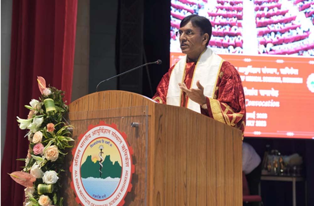 केन्द्रीय चिकित्सा एवं स्वास्थ्य मंत्री मनसुख मांडविया ने कहा कि सभी चिकित्सकों को अपने सामथ्र्य तथा कर्तव्यपरायणता के साथ काम कर वर्ष 2047 तक देश को विकसित बनाने में अपनी महत्वपूर्ण भूमिका निभानी है। मांडविया शनिवार को मुख्यमंत्री भजनलाल शर्मा, केन्द्रीय जलशक्ति मंत्री गजेन्द्र सिंह शेखावत की उपस्थिति में जोधपुर के अखिल भारतीय आयुर्विज्ञान संस्थान के चैथे दीक्षांत समारोह में मुख्य अतिथि के तौर पर संबोधित कर रहे थे। उन्होंने दीक्षांत समारोह में उपाधि प्राप्त करने वाले चिकित्सकों को बधाई देते हुए कहा कि हमारे देश में चिकित्सक को कमर्शियल प्रोफेशन ना मानकर सेवा का दर्जा दिया जाता है ऐसे में सभी चिकित्सक मरीज की सेवा को सर्वाेच्च मानकर अपना कर्तव्य निभाएं। उन्होंने कहा कि प्रधानमंत्री नरेन्द्र मोदी जी का मानना है कि अगर 140 करोड़ भारतीय एक संकल्प के साथ कार्य करेंगे तो देश बहुत आगे बढ़ जाएगा।