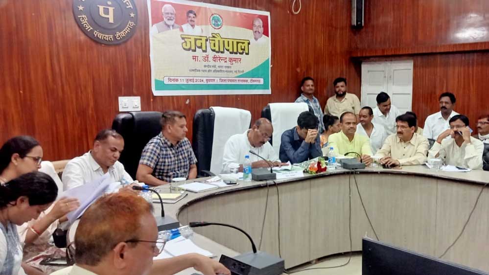आज जिला पंचायत सभाकक्ष कलेक्ट्रेट टीकमगढ़ में जनसुनवाई में केंद्रीय मंत्री डॉ वीरेंद्र कुमार , लोगों की समस्याएं सुनकर उन‌ समस्याओं का निदान करते किया, जिसमें बड़ी संख्या में क्षेत्र के लोग उपस्थित रहे। साथ में प्रशासनिक अधिकारियों सहित भाजपा जिला अध्यक्ष अमित नुना, वरिष्ठ भाजपा नेता विवेक चतुर्वेदी, सांसद प्रतिनिधि अनुराग वर्मा, पूर्व मंत्री अंखड प्रताप सिंह यादव,पूरन चंद्र, अभिषेक खरे रानू, मुन्ना लाल साहू, बृजेश किशोर तिवारी, सुनील खटीक, सचिन खटीक, राजीव जैन वर्धमान, जीतू सेन,प्रफुल्ल द्विवेदी,स्वप्निल तिवारी, पंकज प्रजापति, अरविंद खटीक, देवेंद्र नापित, रोहित वैसाखिया, आदित्य योगी, शुभम व्यास सहित आम जनमानस व क्षेत्र के लोग उपस्थित रहे।