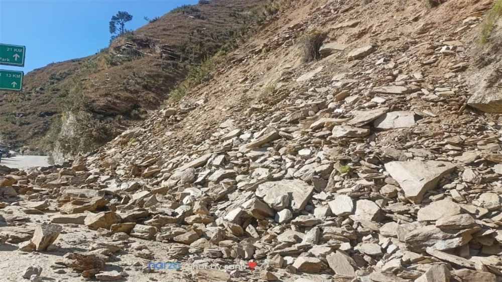 राष्ट्रीय राजमार्ग पर जहां पर पहाड़ी दरक रही है, उस स्थान पर वाहनों का चलना तो दूर पैदल चलना भी दूभर हो गया है। पहाड़ी से गिरते पत्थर वहां खतरा बने हुए हैं।