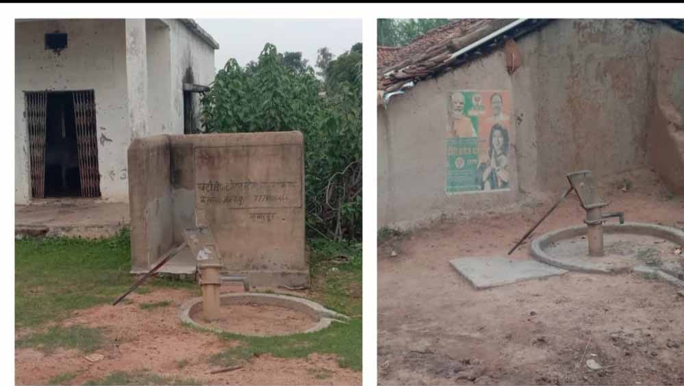 एम.सी.बी. भरतपुर ब्लॉक के कुंवरपुर गांव में हैंडपंप खराब होने से गांव में पेयजल आपूर्ति ठप है। इससे ग्रामीणों को पानी के लिए परेशान होना पड़ रहा है। स्थिति यह है कि ग्रामीणों को कई किलोमीटर दूर से साईकिल व पैदल चलकर पानी की ढुलाई करने को मजबूर होना पड़ रहा है। ज्ञात हो कि कुंवरपुर के कोलपारा की आबादी लगभग 300 सौ के करीब है। इतनी आबादी की प्यास बुझाने के लिए गांव में आधा दर्जन हैंडपंप हैं। जिससे पूरे गांव के लोगों की पानी की आपूर्ति होती थी, लेकिन महज आज वो हैंडपंप सिर्फ प्रदर्शनी बन कर रह गया है। गांव के ही ग्रामीणों ने बताया की हैंडपंपों को ठीक कराने के लिए कई बार शिकायत कर चुंके है, लेकिन अब तक सब कुम्भकर्णीय नींद में सोयें हुऐ हैं। हैंडपंपों के ठीक न होने से गांव में पानी की भारी किल्लत बढ़ती जा रही है। इससे लोगों को पीने के पानी के लिए बहुंत ज्यादा परेशान होना पड़ रहा है। दूरदराज के इलाकों में कई किलो मीटर तक लोगों को जाना पड़ रहा है। ग्रामीणों ने बताया की हमारे द्वारा 28 जून को फोन के माध्यम से पी.एच.ई विभाग के एस.डी.ओ. को सूचित किया गया था किंतु आज तक किसी ने भी ध्यान नहीं दिया।