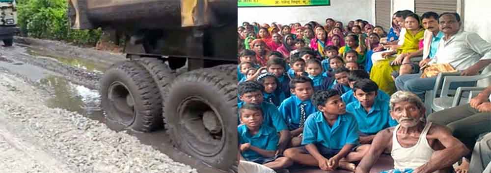 छत्तीसगढ़-रायगढ़ में बदहाल सड़क पर ग्रामीणों ने खोला मोर्चा, स्थानीय विधायक और छात्र धरने पर बैठे