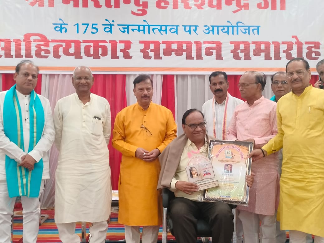 संस्था ने उन्हें देश के पंद्रह चयनित साहित्यकारों में शामिल कर भारतेन्दु हरिश्चंद्र जी की 175वीं जयंती पर शाल, मुक्ताहार, स्मृतिचिन्ह एवं प्रशस्तिपत्र भेंट कर सम्मानित किया। श्री शर्मा का काव्य संग्रह “निर्झर” पूर्व में मंडल रेल प्रबंधक द्वारा विमोचित हो चुका है, जिसमें उनकी 64 मौलिक कविताओं का संकलन है। उनकी रचनाएं “चंबल वाणी” स्मारिका में लगातार प्रकाशित होती रही हैं और उन्हें राजभाषा विभाग से भी पुरस्कृत किया जा चुका है।