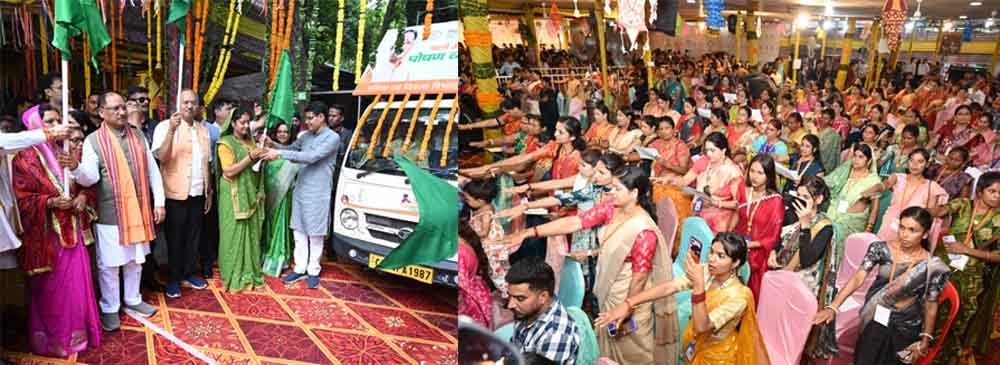 मुख्यमंत्री श्री विष्णु देव साय ने आज यहां अपने निवास में आयोजित तीजा पोरा तिहार के अवसर पर महिला एवं बाल विकास द्वारा संचालित पोषण रथ को हरी झंडी दिखाकर रवाना किया। यह सुपोषण रथ राज्य के विभिन्न गांवों में भ्रमण कर लोगों को पोषण का संदेश देगा। इस अवसर पर उप मुख्यमंत्री श्री अरुण साव, वन मंत्री श्री केदार कश्यप, राजस्व मंत्री श्री टंकराम वर्मा, महिला एवं बाल विकास मंत्री श्रीमती लक्ष्मी राजवाड़े, सांसद बृजमोहन अग्रवाल, श्री किरण देव , विधायक सर्वश्री राजेश मूणत, अनुज शर्मा, खुशवंत साहेब, सचिव महिला एवं बाल विकास श्रीमती शम्मी आबिदी, संचालक तूलिका प्रजापति और बड़ी संख्या में जनप्रतिनिधि एवं महिलाएं उपस्थित थी।