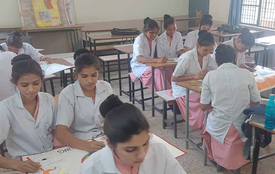 डब्ल्यूएचओ की थीम को नर्सिंग छात्राओ ने कैनवास पर उकेरा