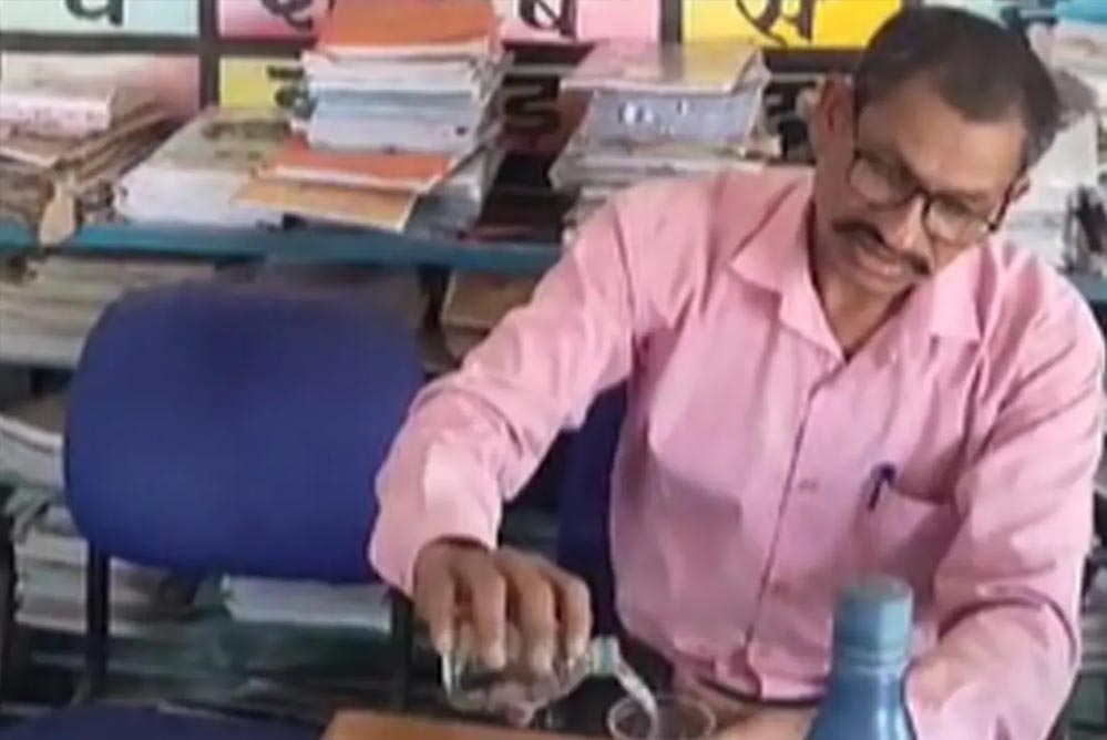 जिस समय वह स्कूल के ऑफिस में बैठक शराब पी रहा होता है उसी दौरान उसके पास ही महिला प्रधानपाठिका भी बैठी हुई है. लेकिन वह आरोपी शिक्षक को ऐसा करने से  नहीं रोकती है. वो सिर्फ कहती है कि ये तो अभी आए हैं. सुबह से नहीं थे. इसपर आरोपी शिक्षक बोलता है उसे आए कई घंटे हो गए हैं और मैं सुबह से ही यहां हूं