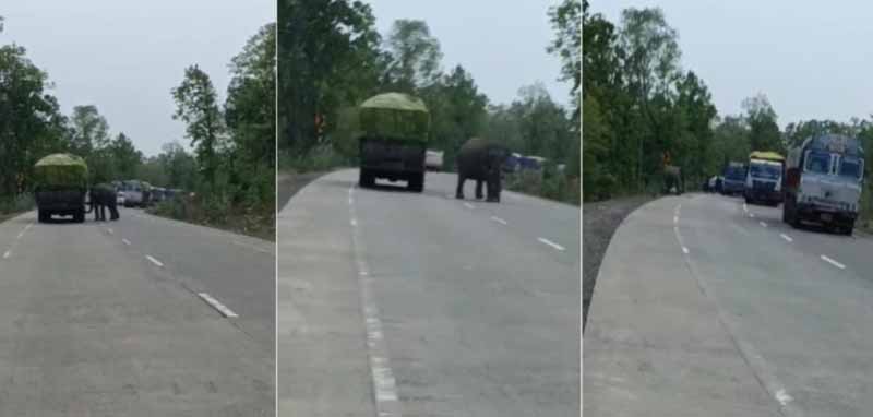 वहीं, हाथी के पास से एक बाइक सवार जा रहा था, हाथी का रौद्र रूप देख वह हड़बड़ी में बाइक से नीचे गिर गया। उसने किसी तरह वहां से भागकर अपनी जान बचाई। जिसके बाद हाथी ने बाइक पर अपना गुस्सा निकाला। हाथी ने पटक-पटक कर बाइक को तोड़ दिया। हाथी का रौद्र रूप देखकर सभी लोग डर गए और वहां अफरा-तफरी का माहौल बन गया। हाथी आधे घंटे तक सड़क पर इधर से उधर धूमता रहा। हाथी कभी ट्रक को धक्का देता नजर आया तो कभी सड़क के दोनों तरफ वाहन की तरफ दौड़ता रहा।