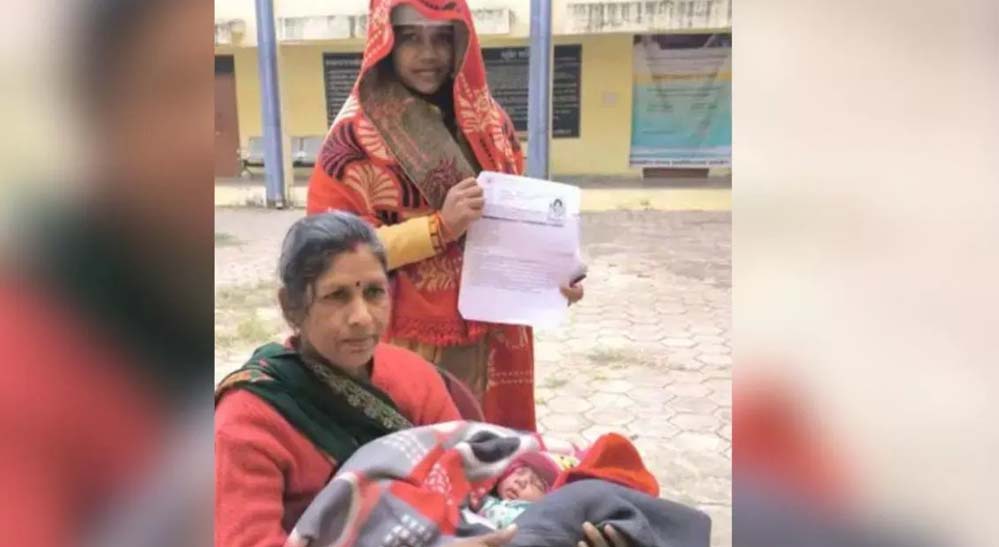 नवजात के साथ परीक्षा देने पहुंची महिला