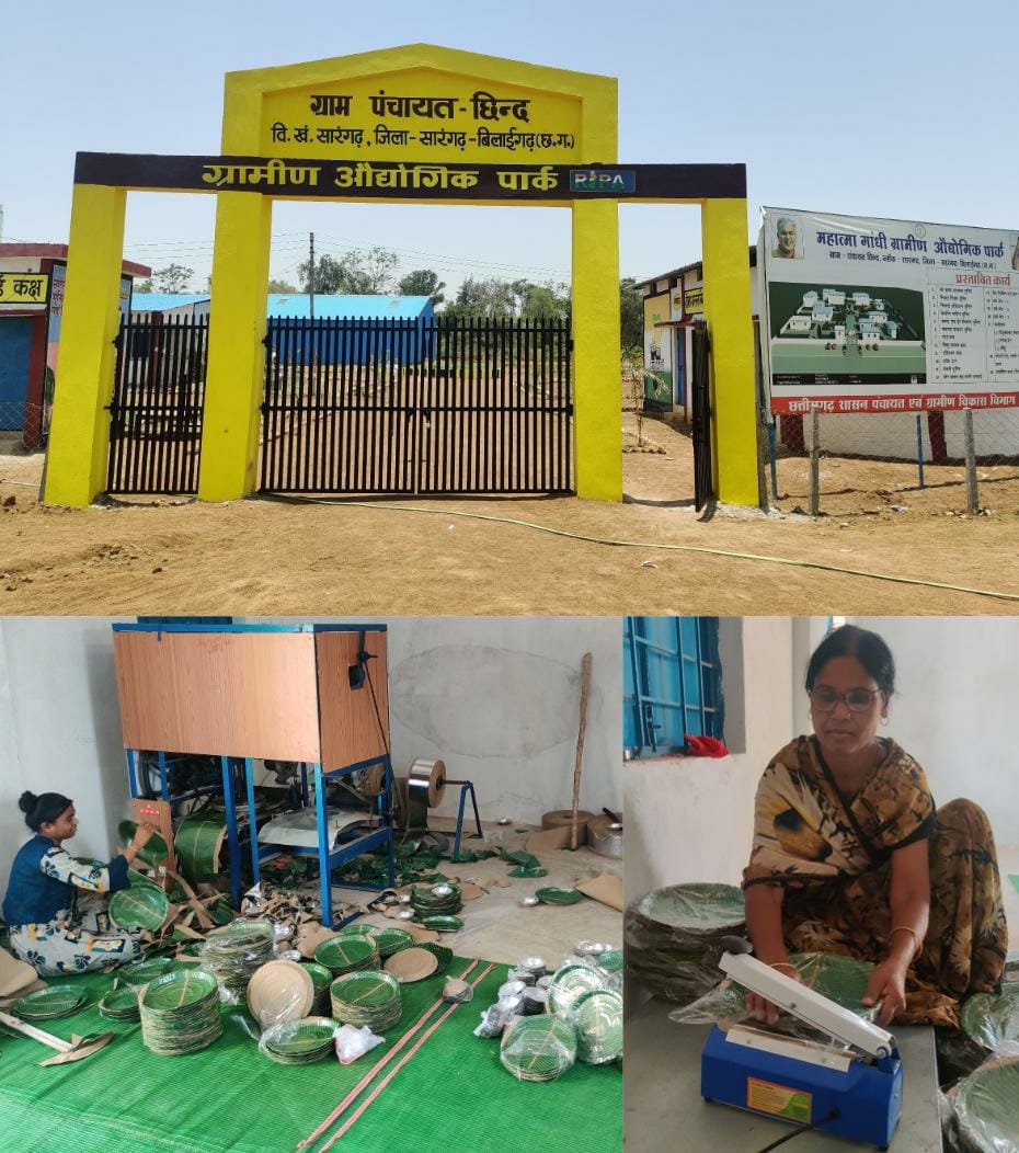 मुख्यमंत्री भूपेश बघेल द्वारा गावों में भी रोजगार के बहुआयामी केंद्र स्थापित करने के उद्देश्य से गावों में रीपा की शुरूआत की गई है। राज्य सरकार की महत्वाकांक्षी योजना महात्मा गांधी रूरल इंडस्ट्रियल पार्क योजना- रीपा के अंतर्गत सभी जिलों में रूरल इंडस्ट्रियल पार्क का निर्माण किया गया है। इसमें ग्रामीण क्षेत्रों के चयनित गौठानों को आजीविका के केन्द्र के रूप में विकसित किया गया है। गौठानों में वर्मीकम्पोस्ट, मुर्गी पालन, बकरी पालन, कृषि उत्पादों और वनोपजों के प्रसंस्करण एवं ग्रामोद्योग संबंधी कार्य किये जा रहे हैं। इन गतिविधियों के माध्यम से बड़ी संख्या में स्व-सहायता समूह की महिलाओं और ग्रामीण युवाओं को रोजगार और आय के अवसर प्रदान किये जा रहे हैं। इसी क्रम में सारंगढ़ के छिन्द स्थित रीपा गौठान में दिशा स्व सहायता समूह की महिलाओं द्वारा विविध कार्य किए जा रहे हैं। प्रस्तावित कार्यों में मशरूम यूनिट, सिलाई प्रशिक्षण यूनिट, वेल्डिंग मशीन यूनिट, बेकरी यूनिट, मिठाई बाक्स यूनिट, फ्लाईएश ईंट निर्माण यूनिट, दोना पत्तल यूनिट, मुर्रा मिल मशीन, चैन लिंकिंग एवं तार फेंसिंग का कार्य एवं गार्डनिंग का कार्य लिया जा रहा है। इसके अलावा गौठान में वर्किंग शेड की व्यवस्था है, साथ ही शिशु पालन कक्ष एवं प्रशिक्षण केन्द्र भी संचालित किया जा रहा है।